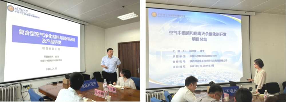 本次研讨旨在推进陕煤—秦岭计划项目的顺利实施,项目负责人崔龙汇报项目研究内容、工作进展及下一步研究计划。赵宇蕾博士对结题项目“空气中细菌和病毒灭杀催化剂开发”进行了总结汇报。徐婕表示,陕煤—秦岭计划重点资助的材料领域与地环所空气净化材料科研方向紧密契合,对结题项目取得的成果给予充分肯定并将持续结合市场需求探索产业化路径。黄宇表示与陕煤集团的合作,有利于促进科技成果转化为新质生产力,全面释放创新驱动开展的原动力。